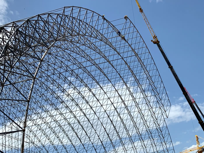 (2)网架加工前应对现场尺寸进行复测,确认无误后方可进行加工、安装;网架制作、运输、安装应遵守《空间网格结构技术规程》JGJ7-2010、《钢网架肇东螺栓球节点》JG/T 10-2009、《钢网架肇东螺栓球节点用高强度螺栓》 GB/T 16939-2016、《肇东钢结构肇东工程肇东施工规范》 GB50755-2012、《肇东钢结构肇东工程施工质量验收标准》 GB50205-2020。